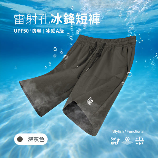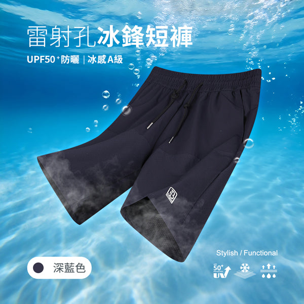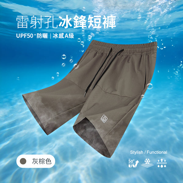 UPF50+冰感A級透氣防曬拼接雷射切割孔冰鋒短褲